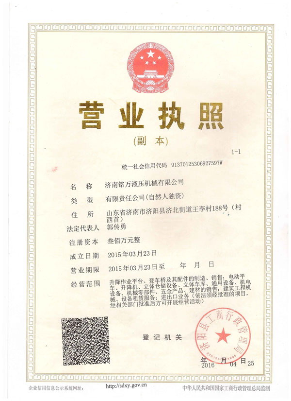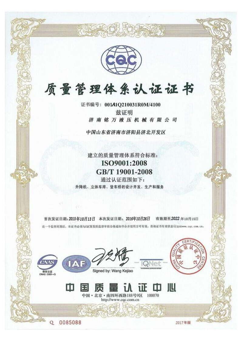 +濟(jì)南銘萬液壓機(jī)械有限公司【原濟(jì)南機(jī)械廠】,是全國制造液壓升降機(jī)、升降平臺(tái)的廠家,產(chǎn)品有八大系列六十多個(gè)品種,規(guī)格齊全、質(zhì)量穩(wěn)定、安全可靠、方便快捷;產(chǎn)品銷往全國各地,深受用戶好評。升降機(jī)廠家技術(shù)力量雄厚,產(chǎn)品設(shè)計(jì)先進(jìn)、工藝成熟、實(shí)驗(yàn)檢測手段完善,“質(zhì)量第一,用戶至上”是我們的宗旨。 本公司采用先進(jìn)的管理手段,嚴(yán)密的質(zhì)量監(jiān)控體系和良好的售后服務(wù)隊(duì)伍為我們的產(chǎn)品走向市場創(chuàng)造......